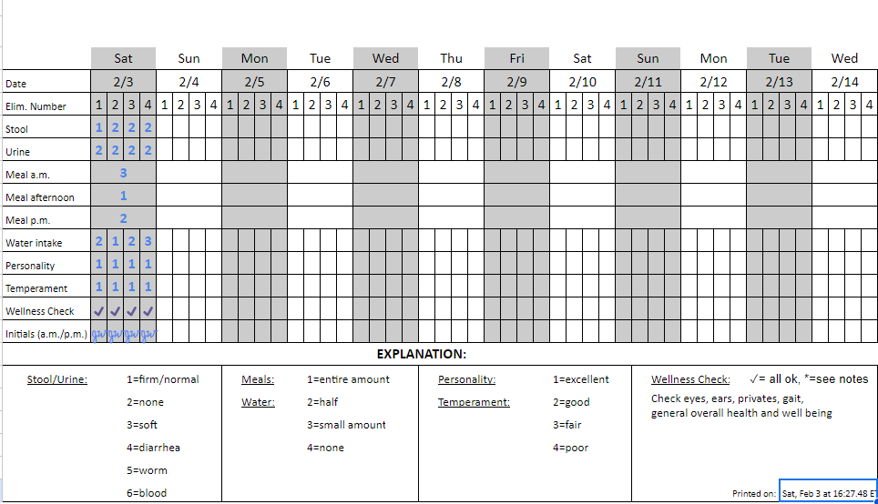 If anything is abnormal, please write the abnormality on the pet's room card, let management know, and ensure a note is left on the animal's profile in Gingr.